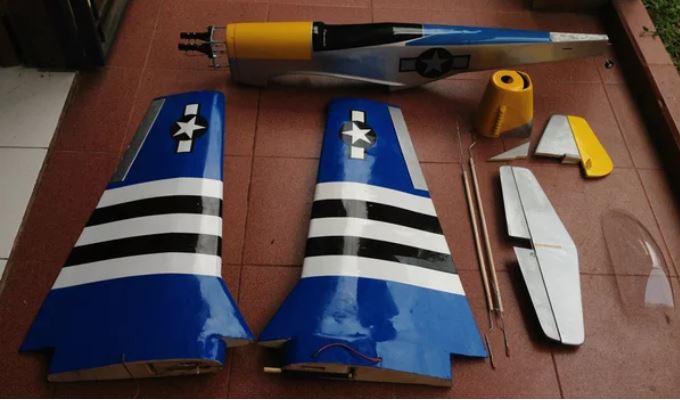 ARF | Kondisi pesawat sudah dirakit dan di cover dengan Indocote dan difinishing, masih perlu penyambungan sayap dan ekor, instalasi aksesoris, sistem radio control dan engine. |